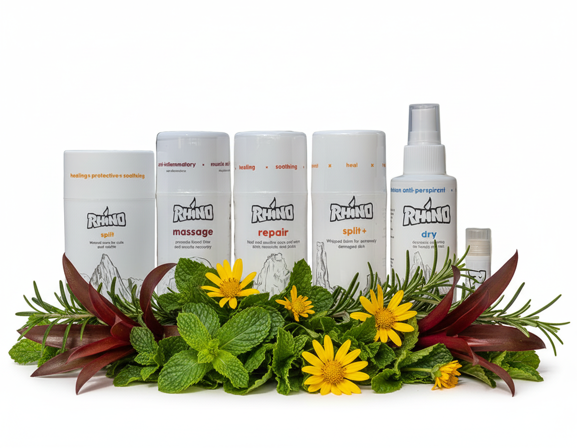 Introducing the Rhino Pro Pack—the ultimate collection for those who push their body to the limit. This comprehensive kit offers a great assortment of Rhino's most popular products, designed to heal, protect, and maintain your skin, even under the most demanding conditions. Perfect for climbers and adventureres, this kit includes essential body care items, Nail Clipper/bottle opener, calous file and a new Rhino pouch to keep everything organized.
