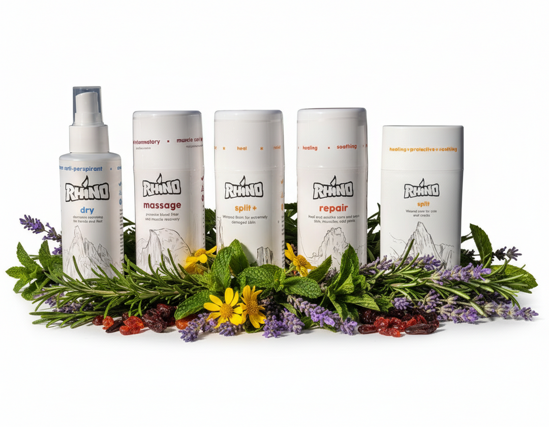 Rhino Skin Solutions is designed for climbers, protecting your grip, healing worn skin, and speeding up recovery from one send to the next. Natural, effective, and made for those who live to push their limits.